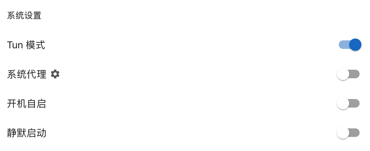 在 Clash Verge 左侧选择「设置」,然后打开「系统代理」的开关: